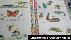 Прошу Наталью почитать нам шорскую азбуку: "Муравей – қымысқаш, бабочка – қонақ, оса – оос, муха – падат, лягушка – пага, ящерица – келескен, змея – чылан".